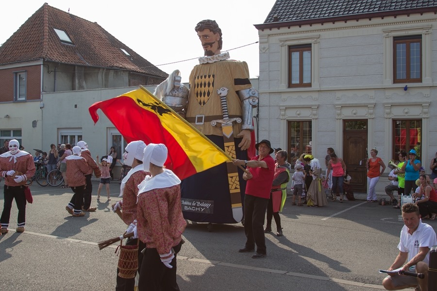 Antoine de Baissy et ses gilles sont allés défiler le 13 juillet 2013 à Mouchin dans l’après midi, pour fêter les 10 ans de leur géant.